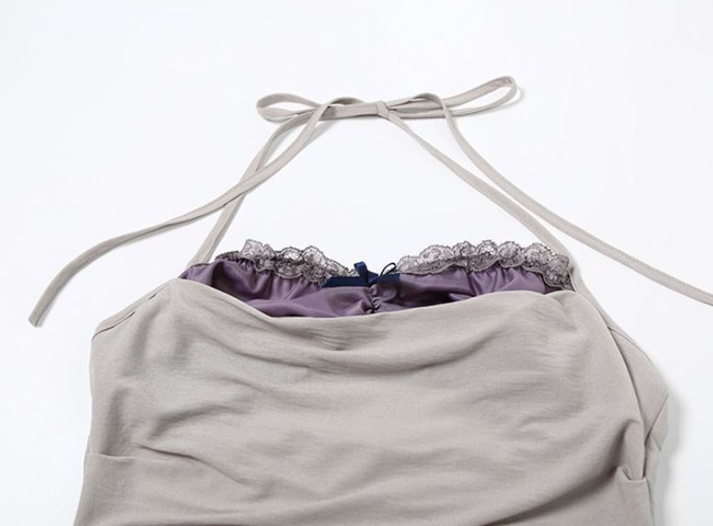 【黑店】歐美性感撞色綁帶背心 辣妹露背蕾絲滾邊撞色背心 性感紫灰色辣妹背心 合身灰色彈性背心 OT660