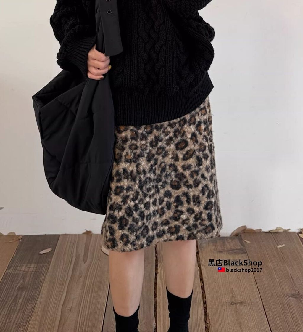 【黑店】秋冬款豹紋羊羔毛中短裙 百搭時尚高腰豹紋中裙 復古穿搭顯瘦包臀短裙 時尚穿搭 豹紋及膝裙 OT703
